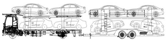 對于車輛運輸車(轎運車)標準車型的規范,文件中要求,符合《汽車、掛車及汽車列車外廓尺寸、軸荷及質量限值》(GB 1589)要求的平頭鉸接列車、長頭鉸接列車及中置軸車輛運輸列車車型。