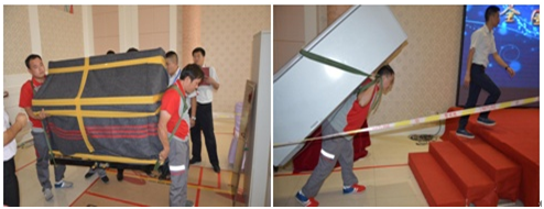 本次比賽涉及家具拆、裝、包裝,冰箱、鋼琴搬運及四通搬家企業文化和組長行為情景模擬等內容。